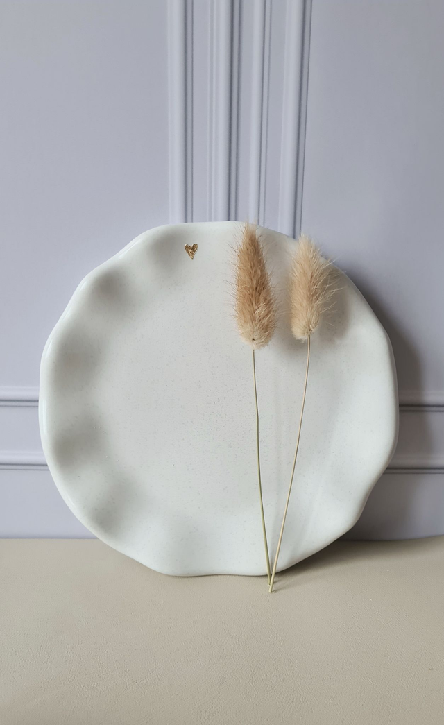 Pièce artisanale : chaque plateau est unique, avec son petit coeur doré.