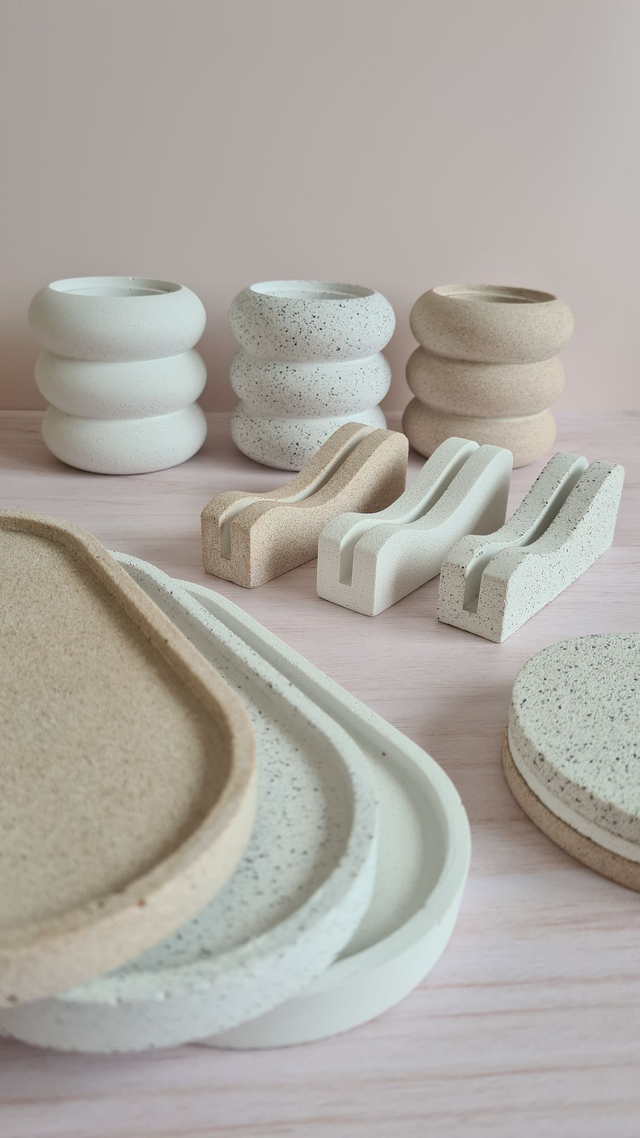 Un petit socle artisanal en jesmonite, pensé pour accueillir tes cartes de visite, une citation inspirante ou une photo qui t’accompagne au quotidien.
